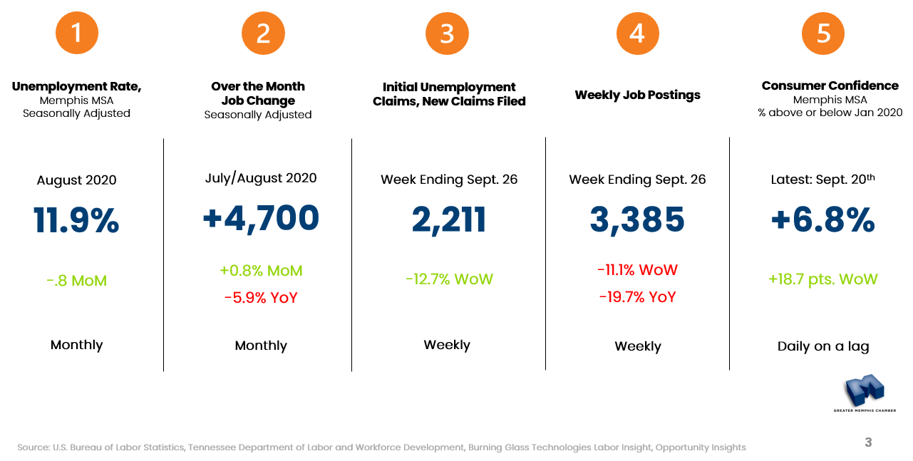 October 2, 2020 – To build an understanding of the current market trends that are impacting the Memphis Metro area, the Chamber has been releasing monthly updates to our economic recovery.