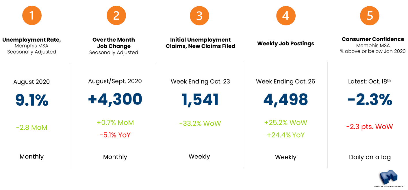 November 3, 2020 – To build an understanding of the current market trends that are impacting the Memphis Metro area, the Chamber has been releasing monthly updates to our economic recovery.