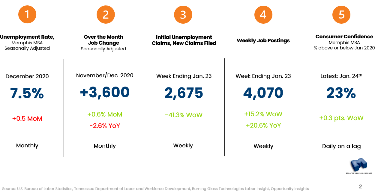 February 8, 2021 – To build an understanding of the current market trends that are impacting the Memphis Metro area, the Chamber has been releasing monthly updates to our economic recovery.