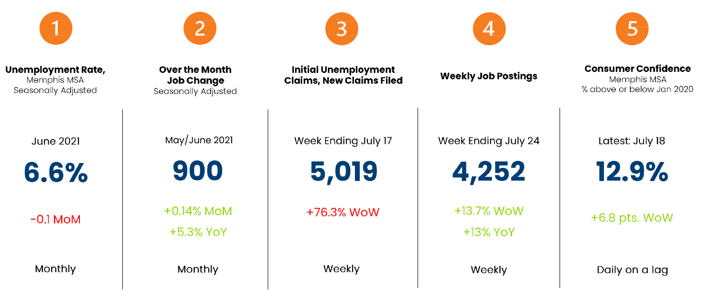 July 29, 2021 – To build an understanding of the current market trends that are impacting the Memphis Metro area, the Chamber has been releasing monthly updates to our economic recovery.